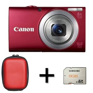 Explore great products and buy online Canon PowerShot A4000 IS Digital Camera Red + Case and 8GB Memory Card 16.0 MP, 8x Optical Zoom 3.0 inch LCD. Product DescriptionIntelligent, stylish camera with 8x optical zoom for those who want to get closer with easeThe PowerShot A4000 IS is serious-looking, stylish and practical. Its slim body packs an impressive 8x optical zoom, whilst Intelligent IS (Image Stabilizer) helps ensure your images are blur-free. With fantastic Canon image quality and HD movie capability, the PowerShot A4000 IS is the ideal companion for nights out or holidays. It's easy to use and even features a Help button to offer you additional guidance, ensuring you always know how to get the best from the camera.Features include:16.0 megapixel sensor28 mm, wide-angle, 8x optical zoom lensOptical Image Stabilizer with Intelligent ISLarge 7.5 cm (3.