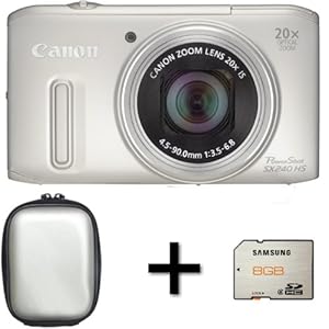 The best place to read user reviews Canon Powershot SX240 HS Digital Camera Silver + Case and 8GB Memory Card 12.1 MP, 20x Optical Zoom 3 Inch LCD. The PowerShot SX240 HS is slim and compact yet it boasts an impressive 20x optical zoom. It is also packed with Canon features to help you capture great shots, effortlessly, making it an ideal camera for all family trips and occasions. Canon's HS System and Intelligent IS help ensure your images are sharp, clear and vibrant whatever the light conditions, whilst full HD movies allow you to capture all the action in perfect detail.