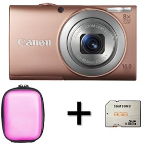 Explore great products and buy online Canon PowerShot A4000 IS Digital Camera Pink + Case and 8GB Memory Card 16.0 MP, 8x Optical Zoom 3.0 inch LCD. Product DescriptionIntelligent, stylish camera with 8x optical zoom for those who want to get closer with easeThe PowerShot A4000 IS is serious-looking, stylish and practical. Its slim body packs an impressive 8x optical zoom, whilst Intelligent IS (Image Stabilizer) helps ensure your images are blur-free. With fantastic Canon image quality and HD movie capability, the PowerShot A4000 IS is the ideal companion for nights out or holidays. It's easy to use and even features a Help button to offer you additional guidance, ensuring you always know how to get the best from the camera.Features include:16.0 megapixel sensor28 mm, wide-angle, 8x optical zoom lensOptical Image Stabilizer with Intelligent ISLarge 7.5 cm (3.