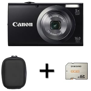 Compare products, prices and read reviews Canon PowerShot A2300 Digital Camera Black + Case and 8GB Memory Card 16.0 MP, 5x Optical Zoom 2.7 inch LCD. The PowerShot A2300 is a great-looking, simple, point-and-shoot camera. Its slim body holds a 5x optical zoom, whilst Digital IS (Image Stabilizer) helps ensure your images are as sharp as possible. With its stylish design, fantastic Canon image quality and HD movie capability, the PowerShot A2300 is perfect for nights out. It's easy to use and even features a Help button to offer you additional guidance, ensuring you always know how to get the best from the camera.Features include:16.0 megapixel sensor28 mm, wide-angle, 5x optical zoom lensDigital IS (Image Stabilizer)6.8 cm (2.7") LCD screen (230k dots)Smart Auto with Auto button for great results in 32 different situationsHelp button for additional guidanceHD movies (720p) with Movie Record button16.0 megapixel sensorThe PowerShot A2300 features a 16.0 megapixel sensor, allowing you to capture high-quality shots that are striking and detailed.
